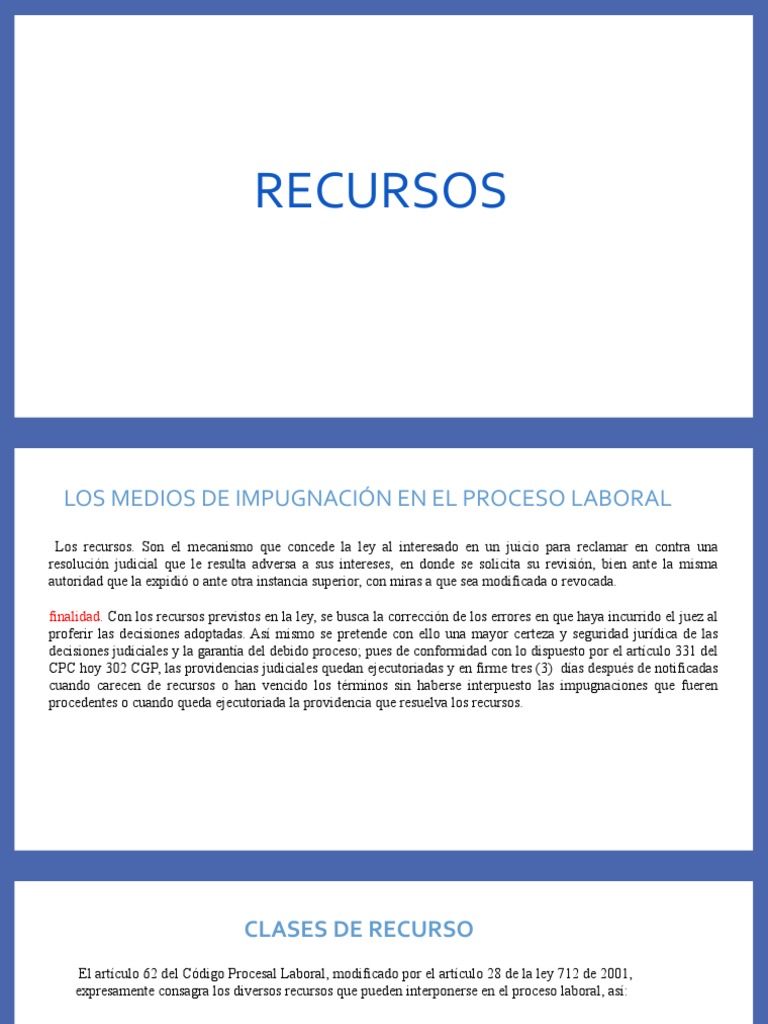 LOS MEDIOS DE IMPUGNACIÓN EN EL PROCESO LABORAL