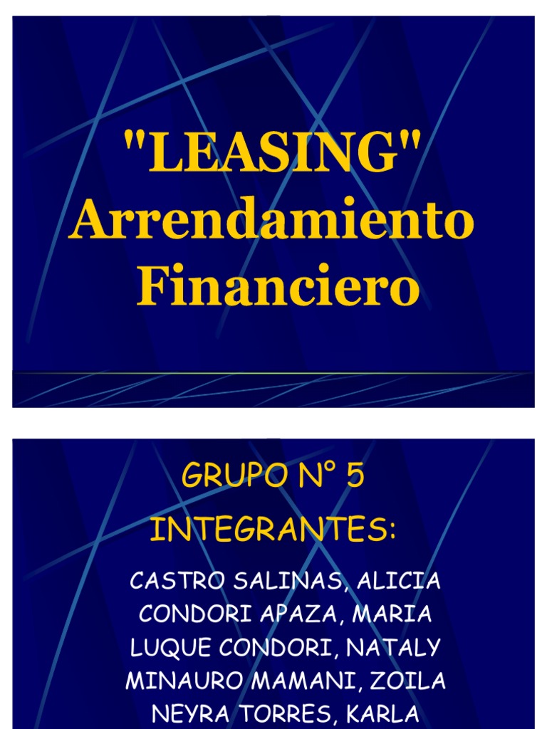 Desde hace mas de veinte aos, el Leasing Financiero ha sido uno de los instrumentos mas utilizados en el Per para la financiacin de inversiones en activos fijos. El principal argumento aunque no el nico ha sido que el leasing Financiero otorga la posibilidad de obtener beneficios tributarios.