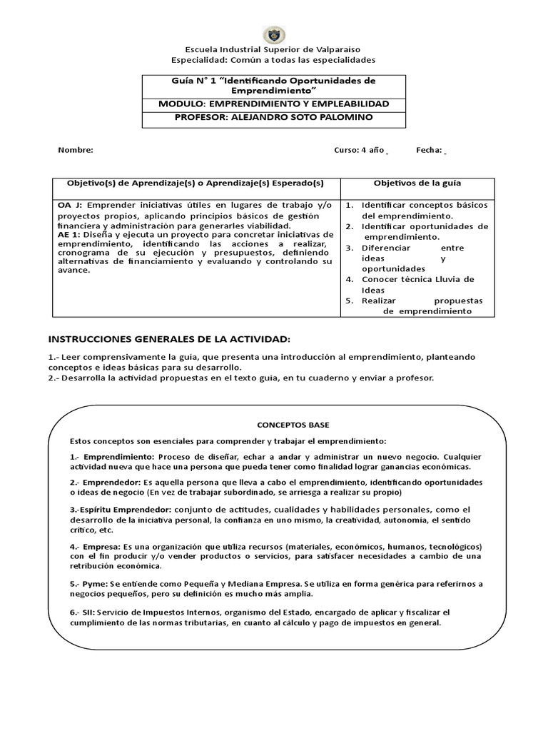 1.- Leer comprensivamente la guía, que presenta una introducción al emprendimiento, planteando