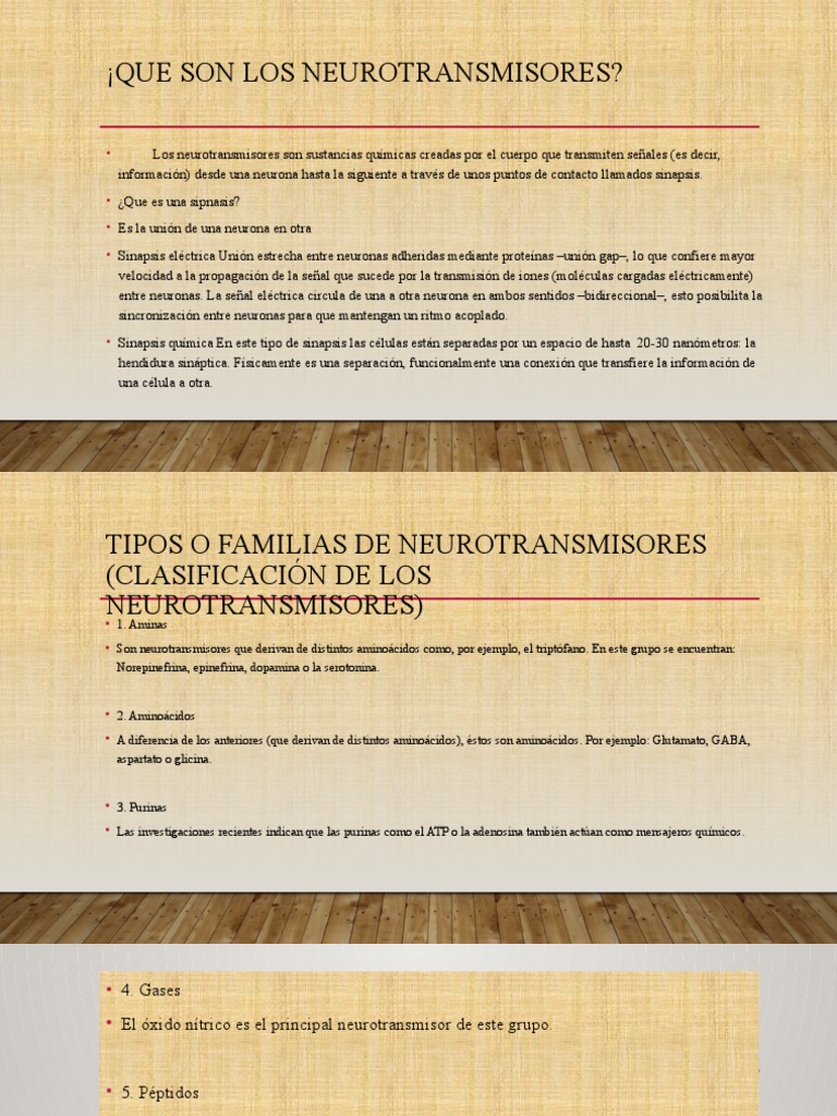 • Los neurotransmisores son sustancias químicas creadas por el cuerpo que transmiten señales (es decir,