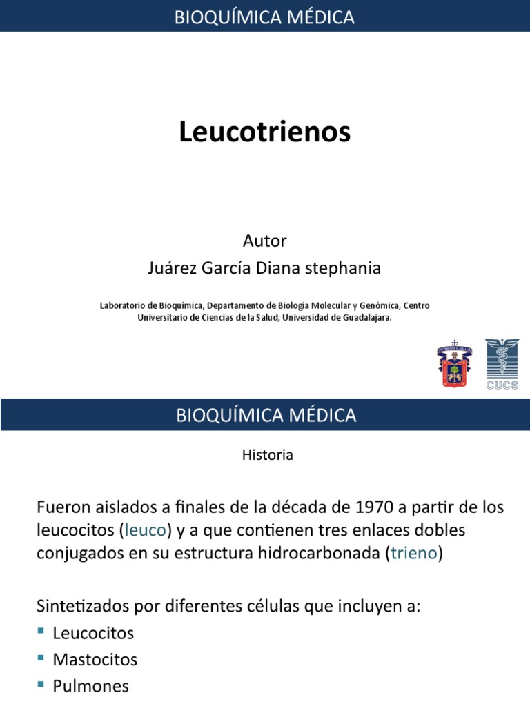 • Aantonella M., (2017) leucotrienos: metabolito del ácido araquidonico de actividad