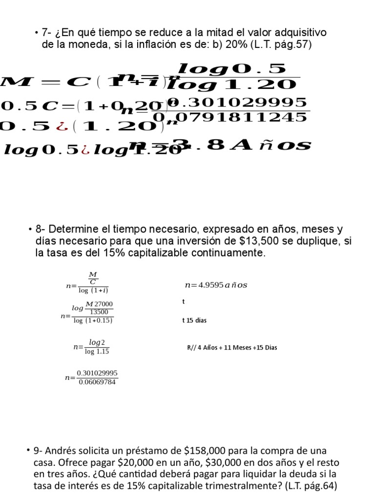 • 8- Determine el tiempo necesario, expresado en años, meses y