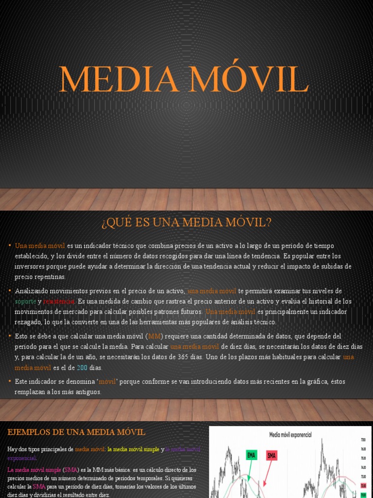 • Una media móvil es un indicador técnico que combina precios de un activo a lo largo de un período de tiempo
