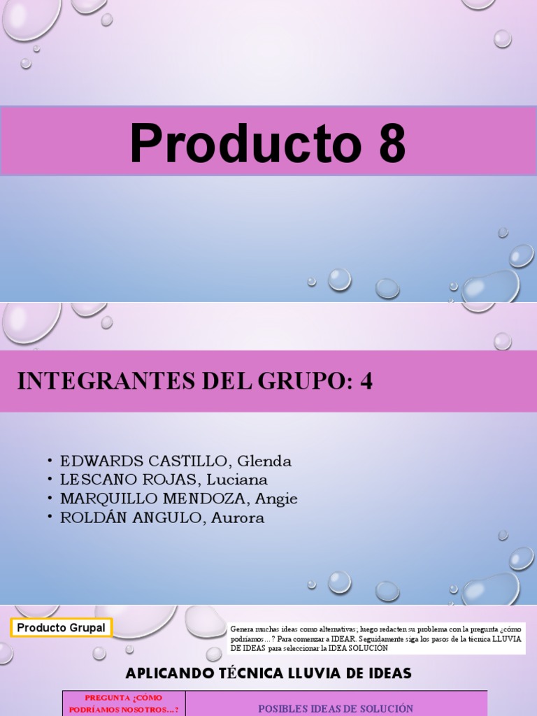Producto Grupal Genera muchas ideas como alternativas; luego redacten su problema con la pregunta ¿cómo