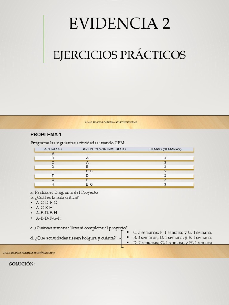 información, utilice el método de ruta crítica para contestar las preguntas que se plantean más abajo.