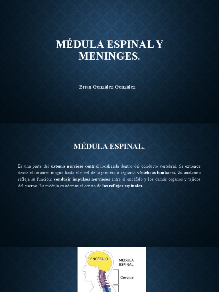 desde el foramen magno hasta el nivel de la primera o segunda vértebras lumbares. Su anatomía