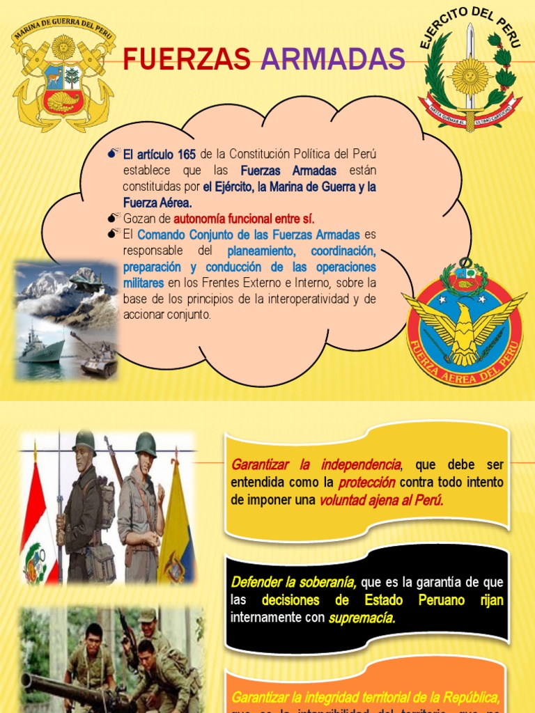 constituidas por el Ejército, la Marina de Guerra y la