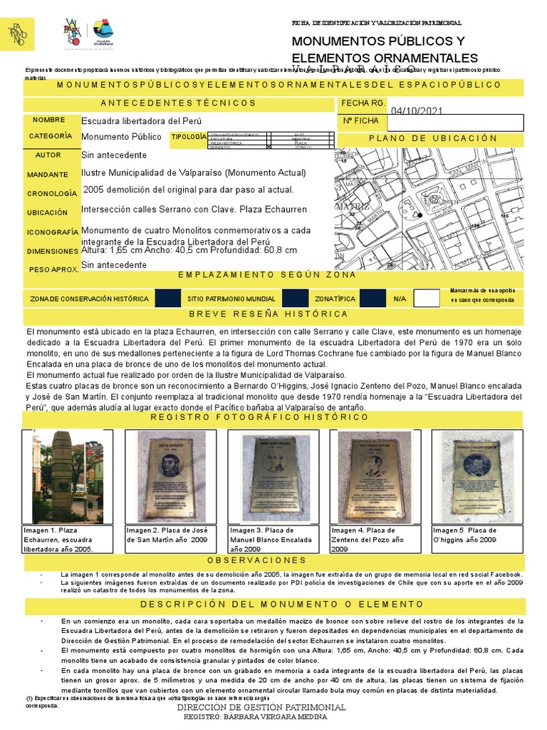 El presente documento propiciará insumos históricos y bibliográficos que permitan identificar y valorizar elementos y monumentos públicos, con el fin de catastrar y registrar el patrimonio público