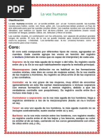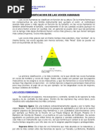 Las voces para fines del canto, se clasifican desde las mas agudas a las mas graves: