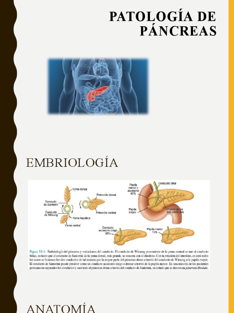 • Alivio de sx con alimentos • Obstrucción del conducto pancreático,