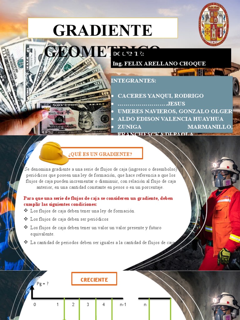 El gradiente geométrico permite calcular tanto el valor presente como el valor futuro de una serie de