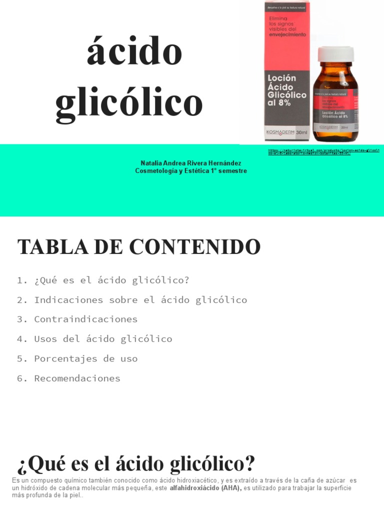 Es un compuesto químico también conocido como ácido hidroxiacético, y es extraído a través de la caña de azúcar es