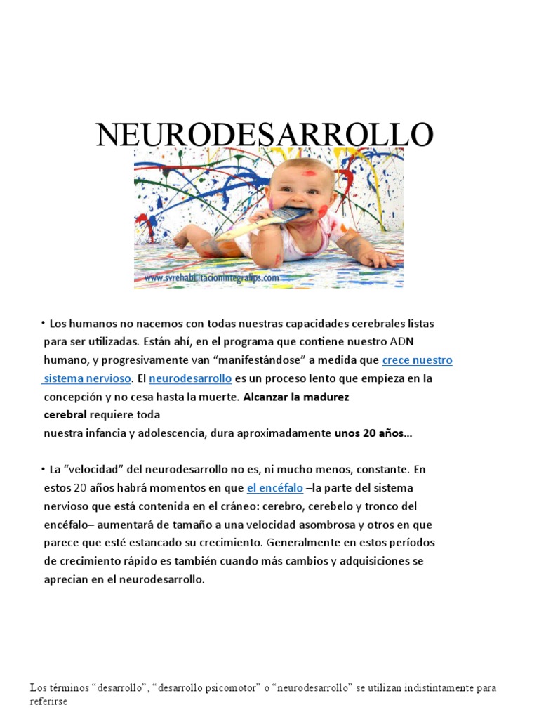 Los términos “desarrollo”, “desarrollo psicomotor” o “neurodesarrollo” se utilizan indistintamente para