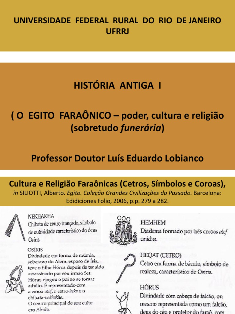 HISTRIA ANTIGA I ( O EGITO FARANICO poder, cultura e religio (sobretudo funerria) Professor Doutor Lus Eduardo Lobianco