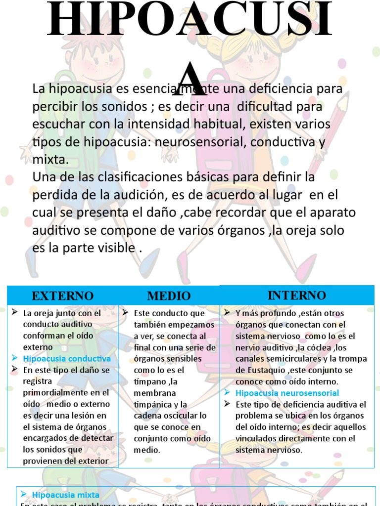 SINTOMAS: Dificultad para percibir los sonidos agudos, zumbido de cabeza, en niños retraso