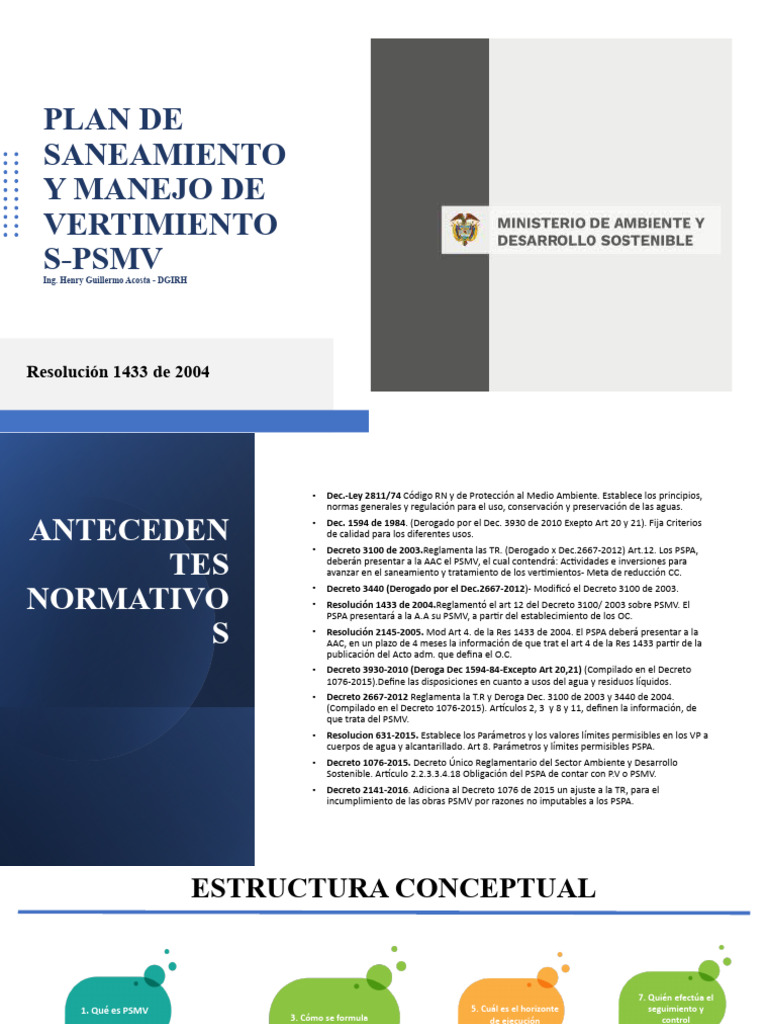 • Resolución 1433 de 2004.Reglamentó el art 12 del Decreto 3100/ 2003 sobre PSMV. El