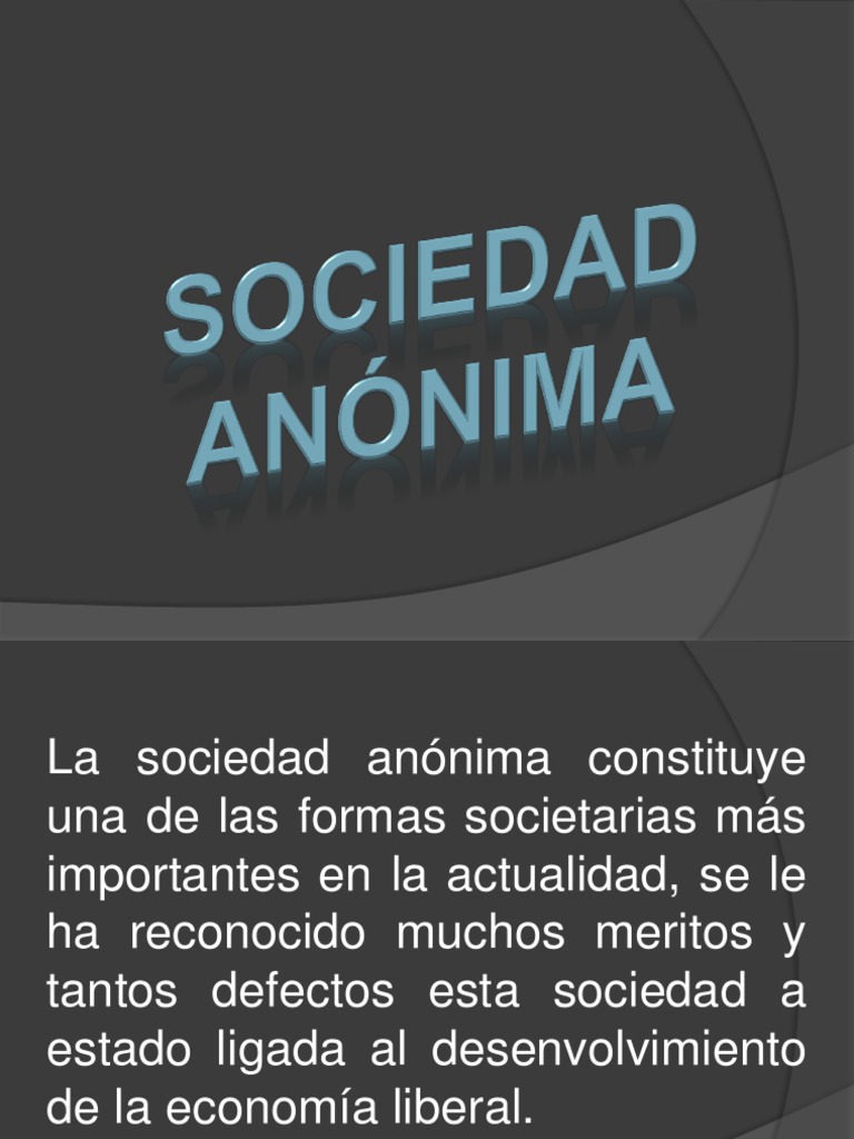 La sociedad annima constituye una de las formas societarias ms importantes en la actualidad, se le ha reconocido muchos meritos y tantos defectos esta