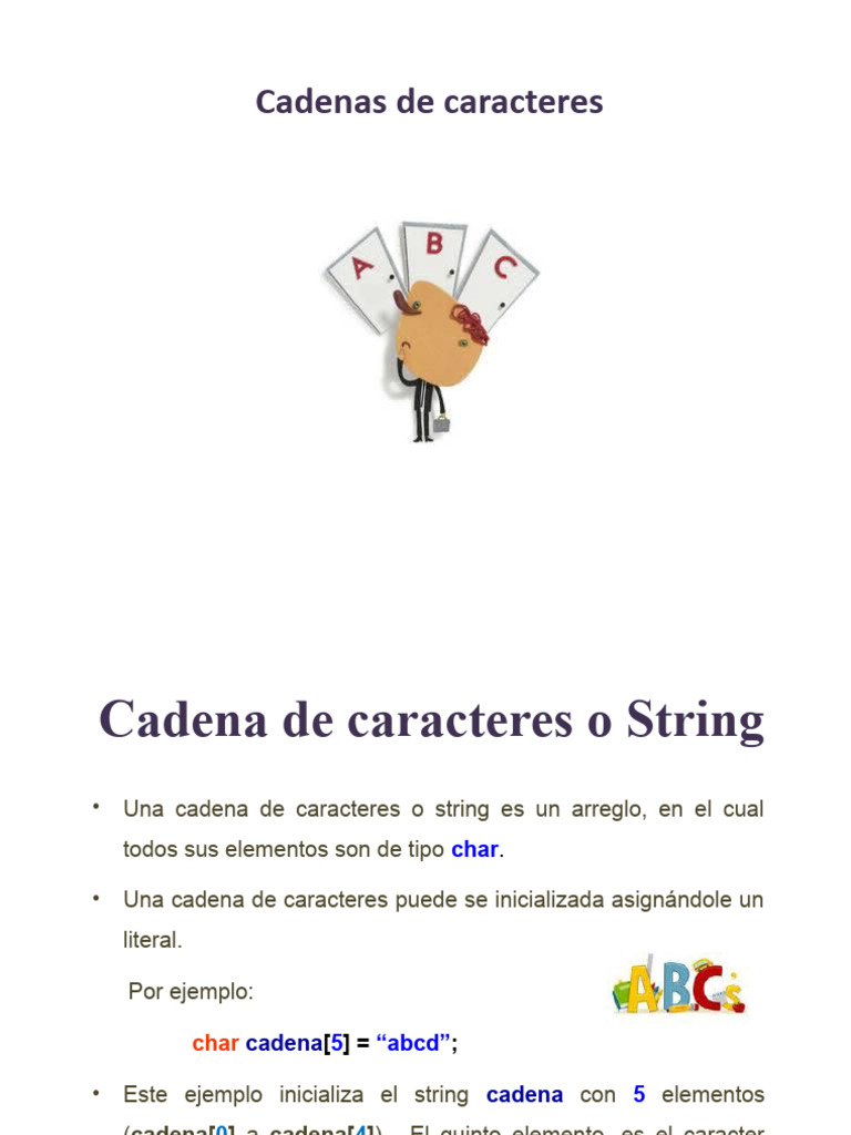 • Una cadena de caracteres o string es un arreglo, en el cual