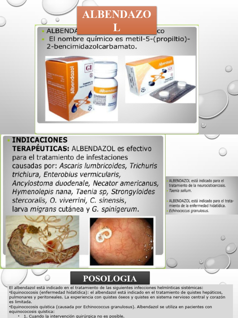 •Equinococosis (enfermedad hidatídica): el albendazol está indicado en el tratamiento de quistes hepáticos,