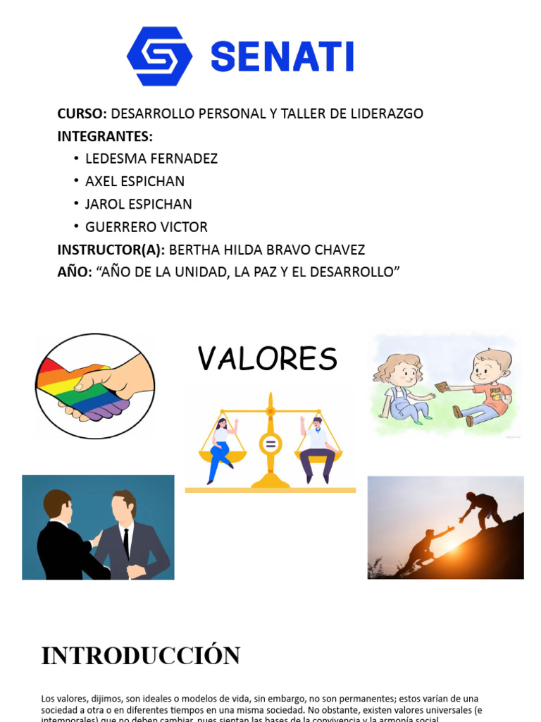 Los valores son aquellos que hacen a una sociedad realizarse, convivir en armonía y alcanzar prosperidad. Estos valores