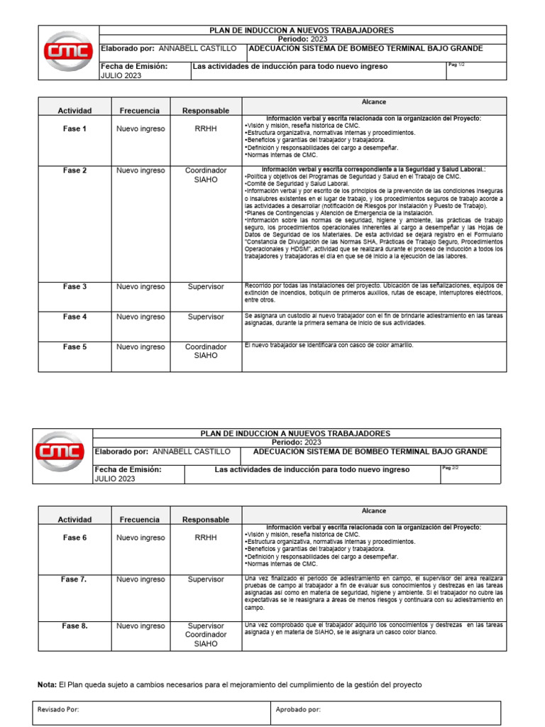 •Política y objetivos del Programas de Seguridad y Salud en el Trabajo de CMC.