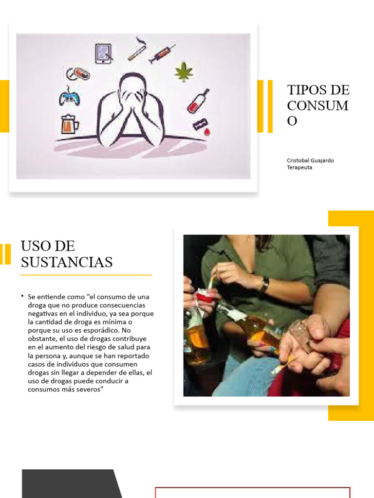 CONSUMO adicción a las drogas. Si existen diferentes tipos de consumo, se