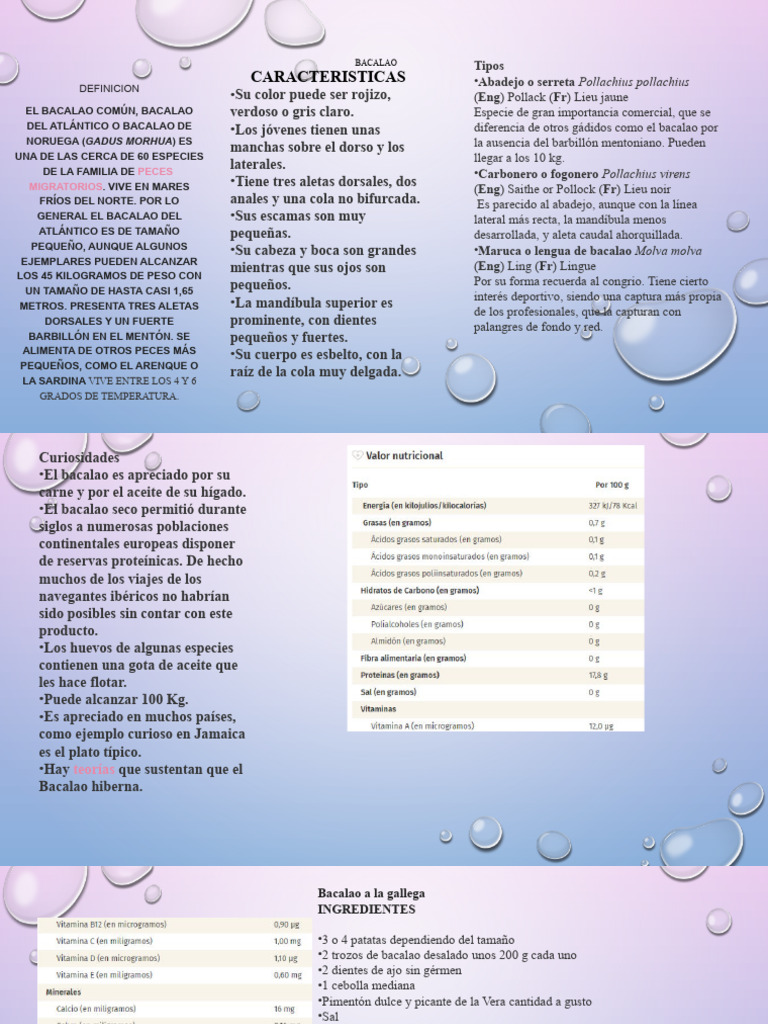 CARACTERISTICAS •Abadejo o serreta Pollachius pollachius