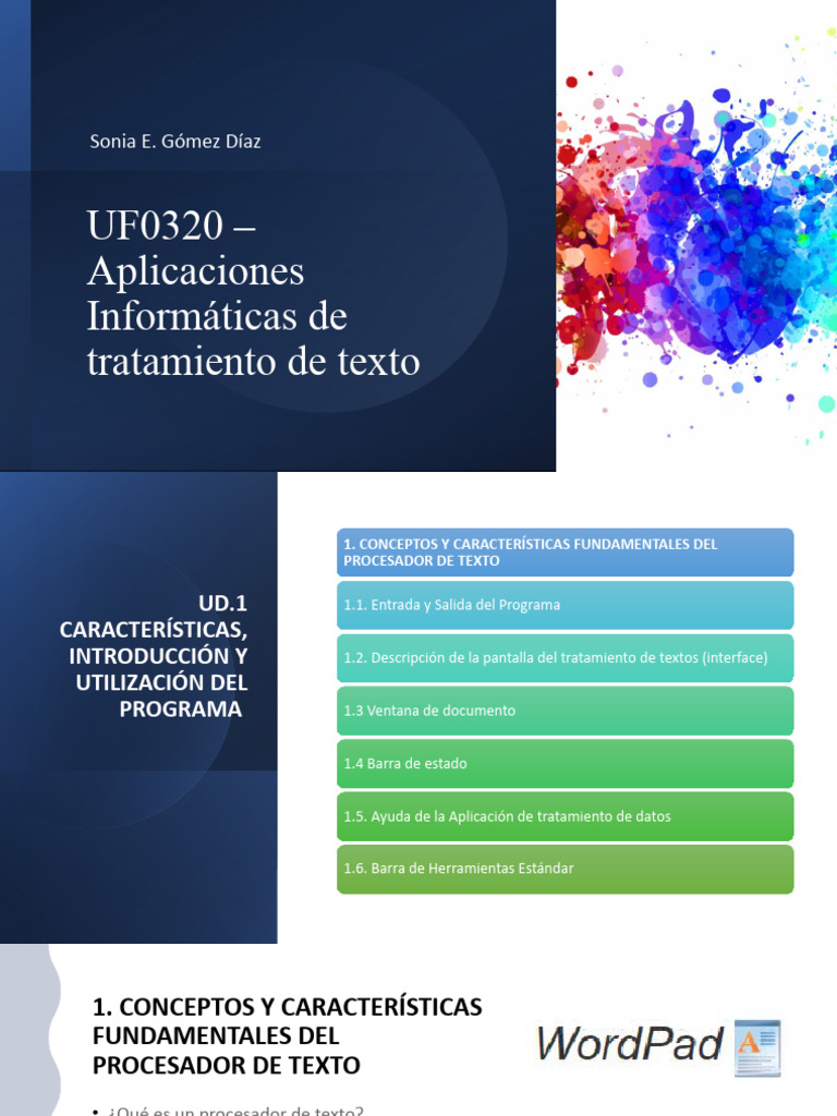 INTRODUCCIÓN Y 1.2. Descripción de la pantalla del tratamiento de textos (interface)