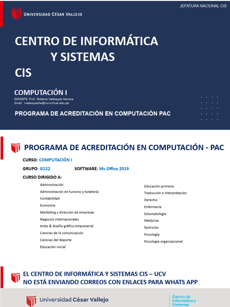 Finalmente, el CIS no crea grupos de WhatsApp en los cursos de computación y por favor NO TOMEN en cuenta mensajes