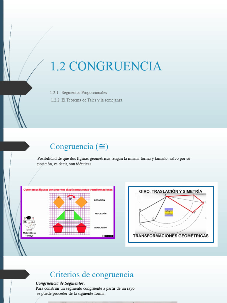 2. Determine el valor de x, y. Justifique si existe congruencia.