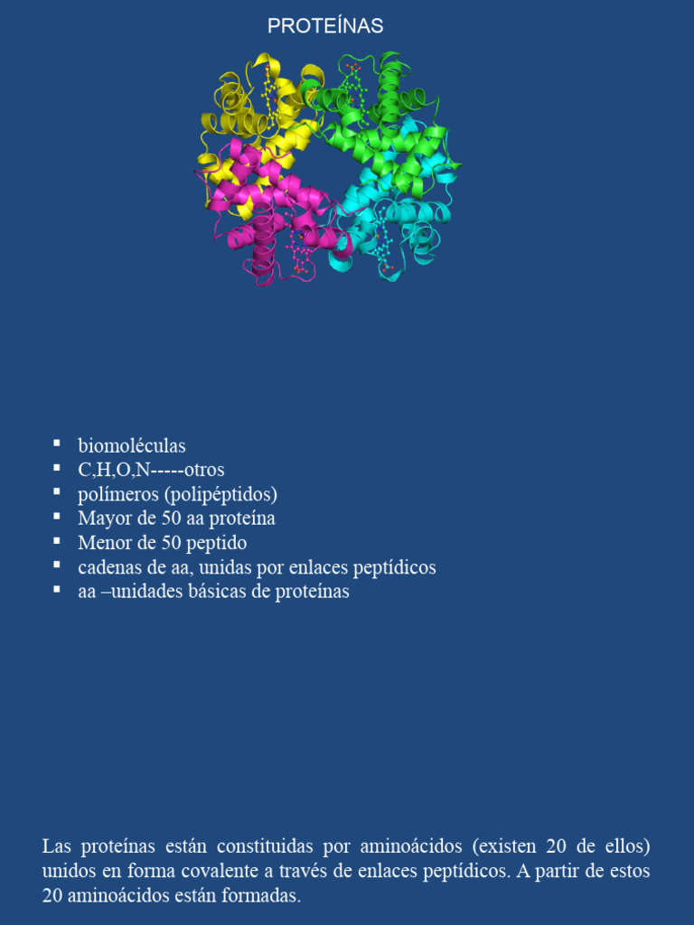 Las proteínas están constituidas por aminoácidos (existen 20 de ellos)