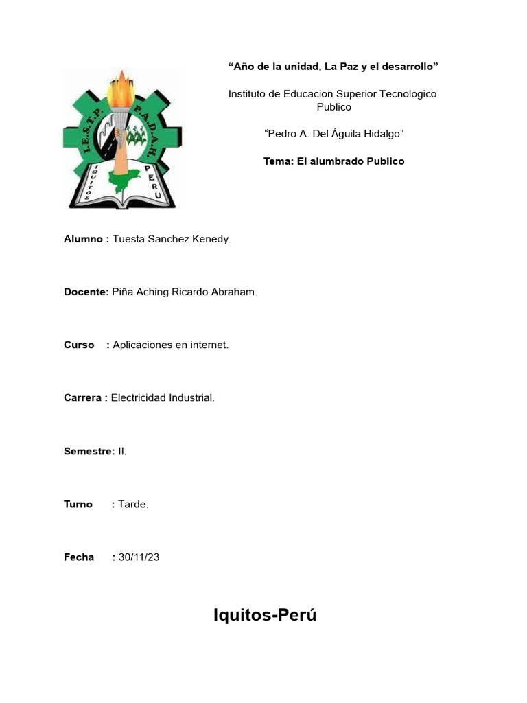 Tema: El alumbrado Publico