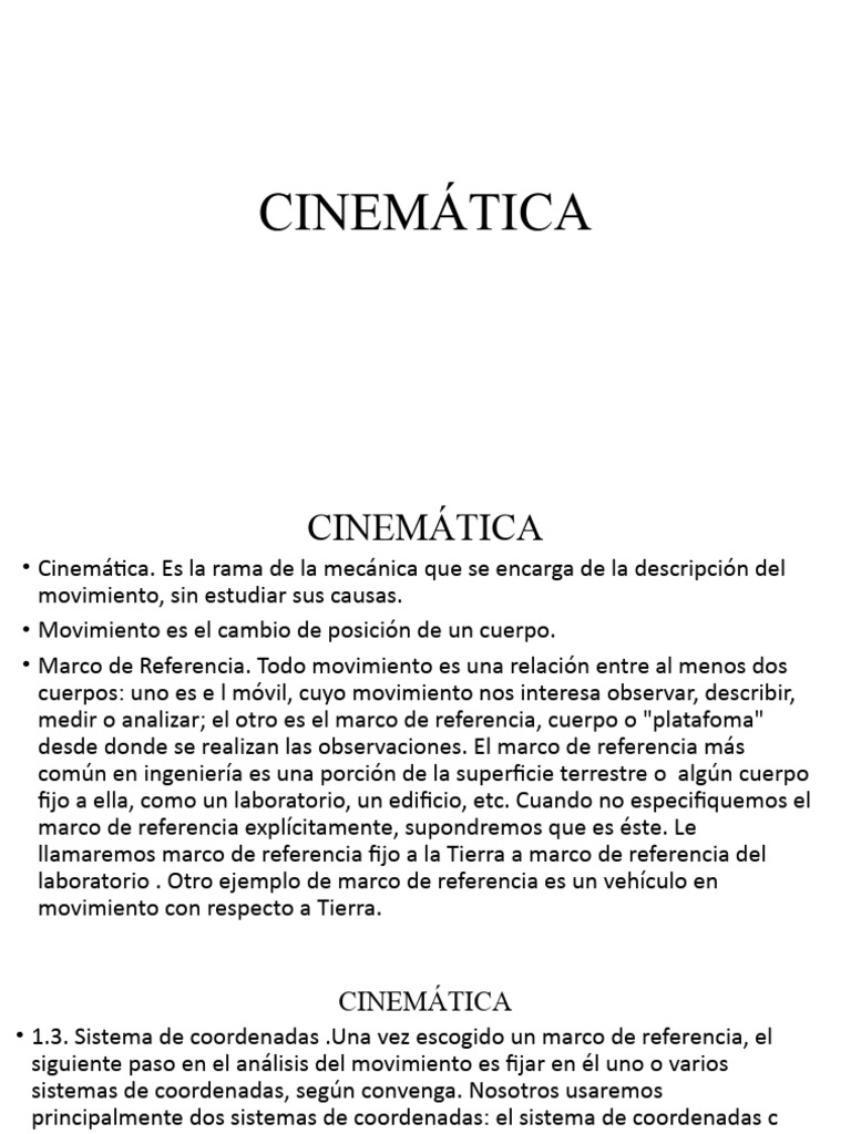 • Cinemática. Es la rama de la mecánica que se encarga de la descripción del