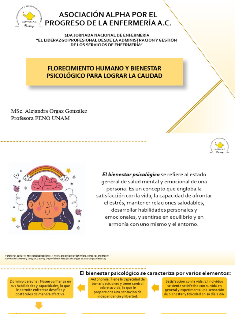 El bienestar psicológico se caracteriza por varios elementos: