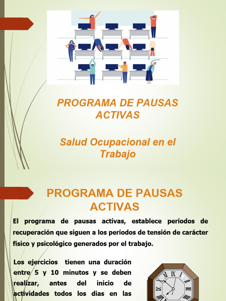 El programa de pausas activas, establece períodos de