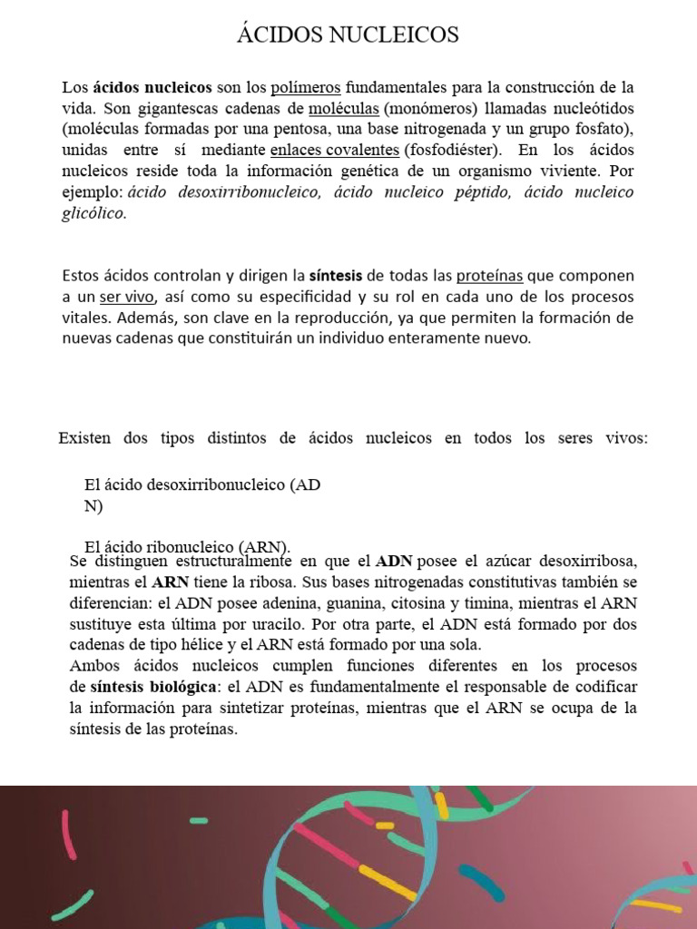 nucleicos reside toda la información genética de un organismo viviente. Por