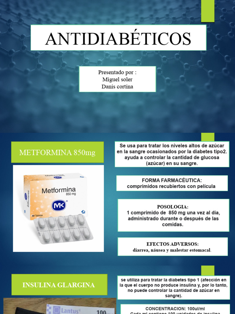 METFORMINA 850mg en la sangre ocasionados por la diabetes tipo2.