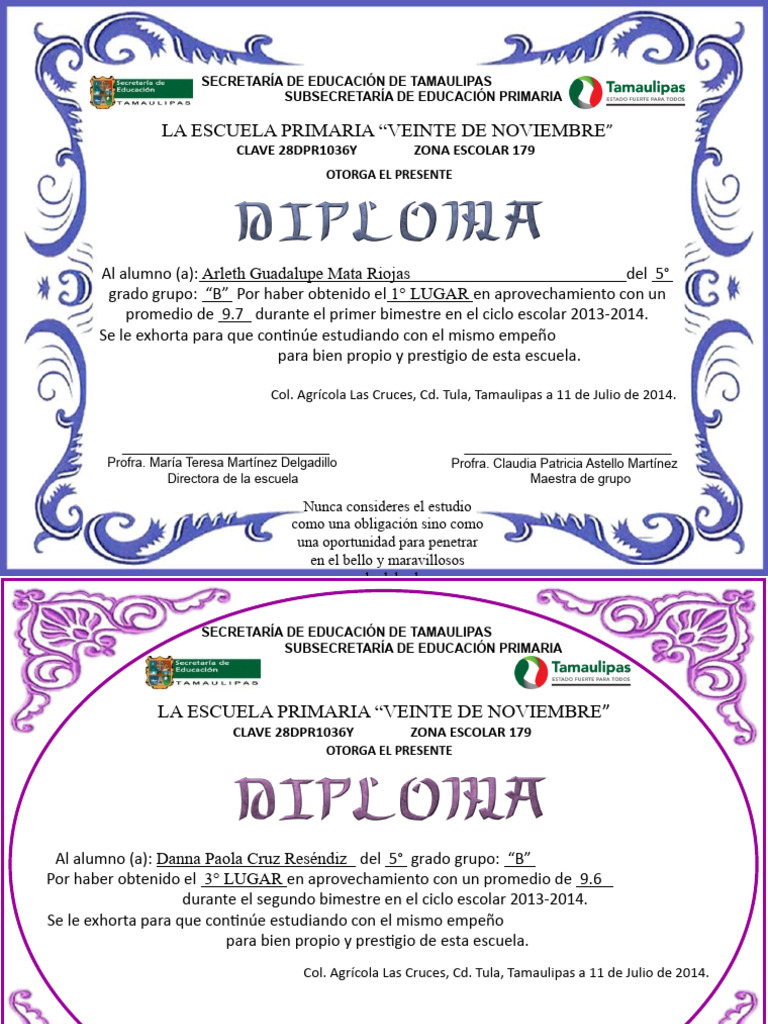 grado grupo: “B” Por haber obtenido el 1° LUGAR en aprovechamiento con un