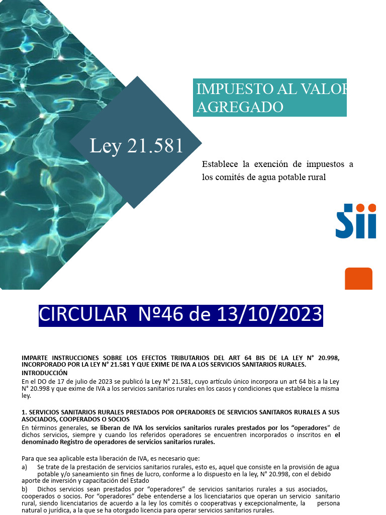 INCORPORADO POR LA LEY N° 21.581 Y QUE EXIME DE IVA A LOS SERVICIOS SANITARIOS RURALES.
