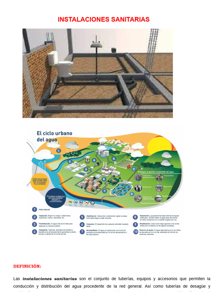 Las instalaciones sanitarias son el conjunto de tuberías, equipos y accesorios que permiten la