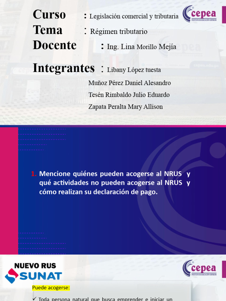 NRUS, Régimen Especial o Régimen MYPE Tributario. Este régimen tributario