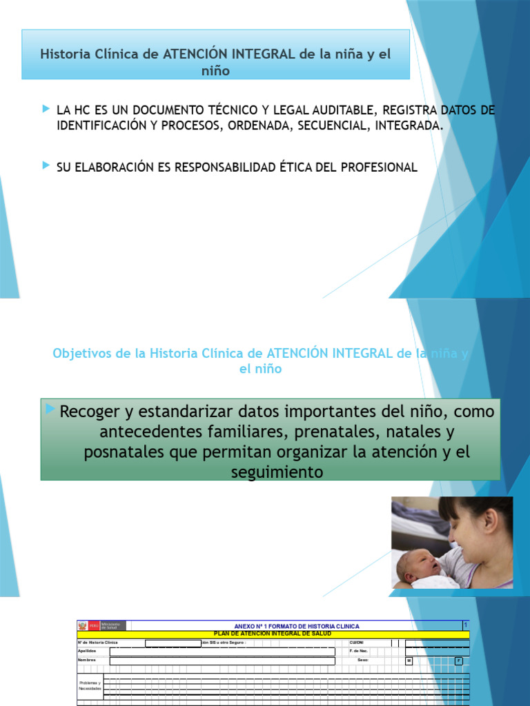 Objetivos de la Historia Clínica de ATENCIÓN INTEGRAL de la niña y