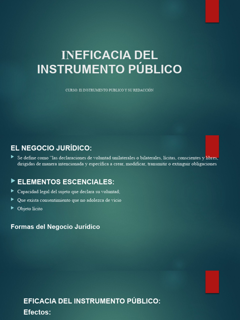 Consiste en la falta de eficacia o de fuerza probatoria, pero la ineficacia del documento notarial