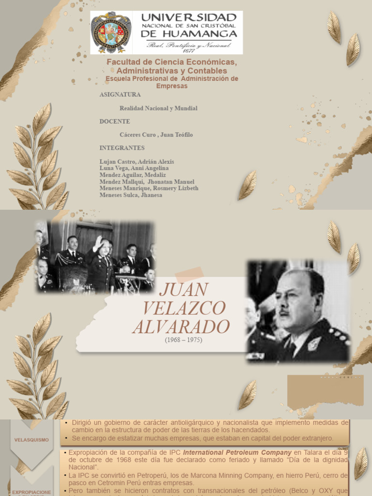 general Juan Velasco Alvarado (quien había tomado el poder