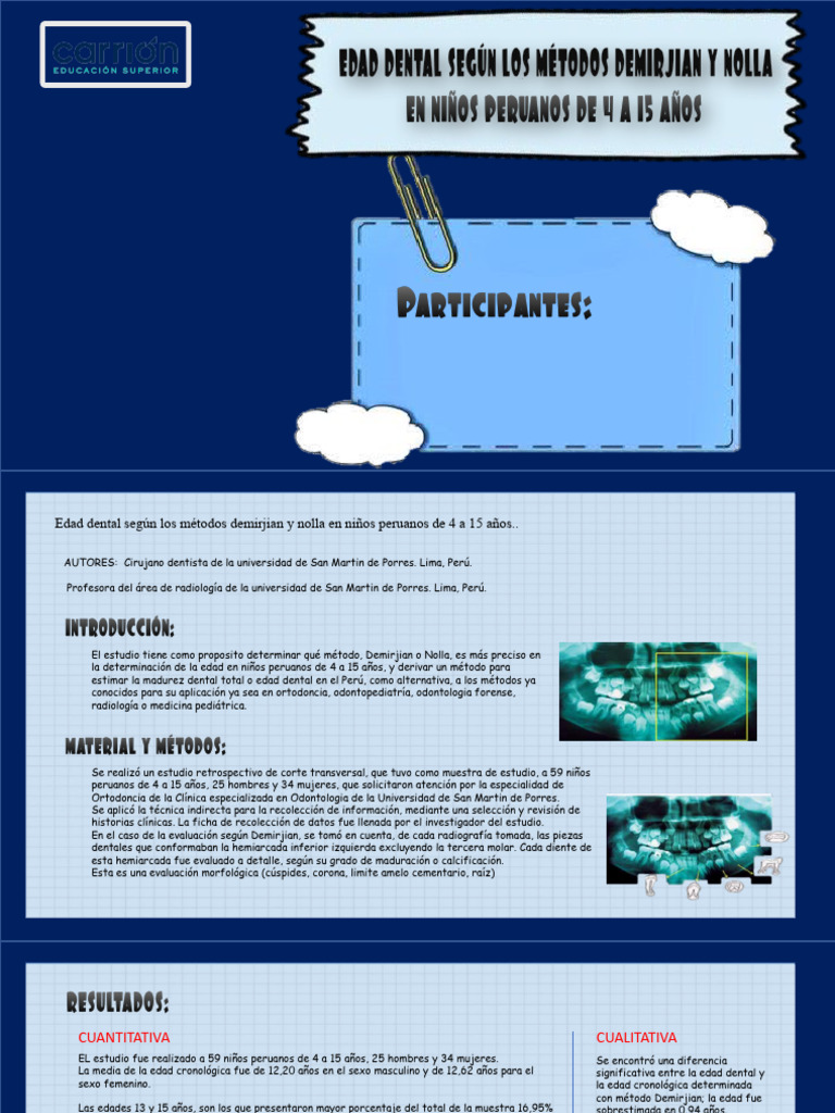 El estudio tiene como proposito determinar qué método, Demirjian o Nolla, es más preciso en