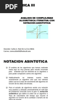 Las notaciones asintticas son aquellas que permiten caracterizar el ritmo de crecimiento de una funcin, en este caso las notaciones asintticas nos permiten caracterizar el comportamiento de T(n) y E(n)