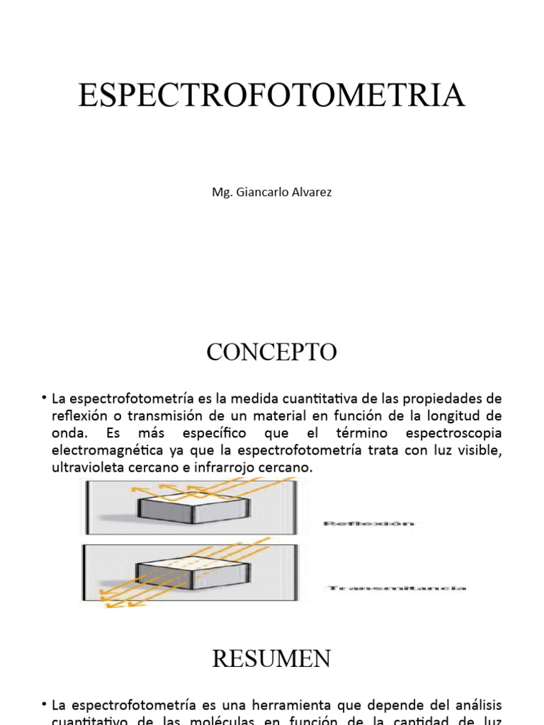 explicación del procedimiento de espectrofotometría incluye comparar la