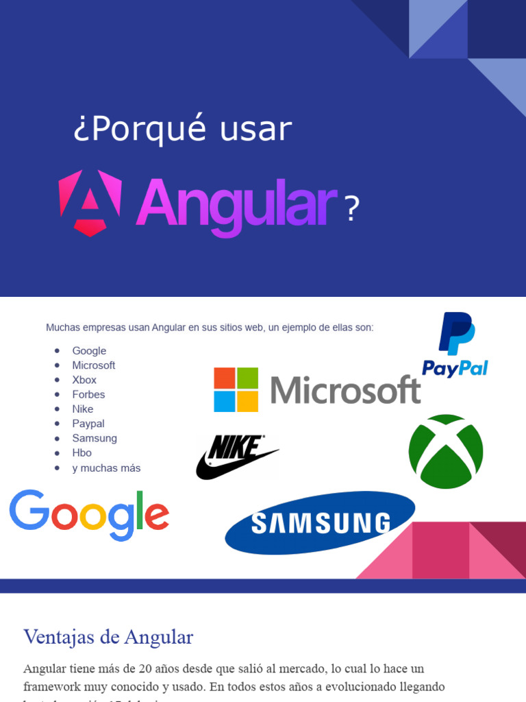 Muchas empresas usan Angular en sus sitios web, un ejemplo de ellas son:
