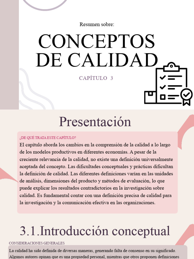 conceptuales de calidad, que se pueden resumir en seis conceptos principales, incluyendo la