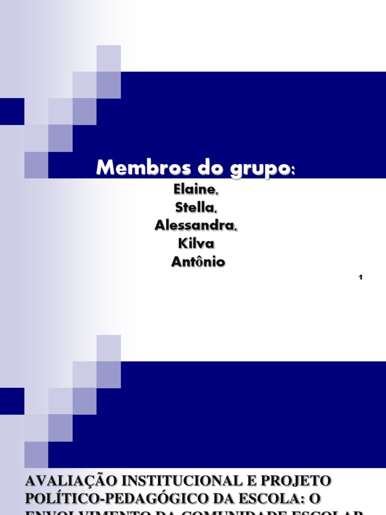 Estratgias para o envolvimento da comunidade escolar no processo de avaliao Metodologias de ao coletiva que facilitaro tal envolvimento Como o processo de Avaliao institucional poder ser importante para o Projeto Pedaggico da Escola